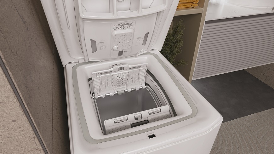 Už nemusíte nanášet prací prostředek přímo na oděvy díky technologii Instant Mix, která mísí vodu a detergent do silně koncentrovaného roztoku. Pračka Haier THASN266TM5-S kropí touto směsí prádlo pro rychlejší a účinnější praní.